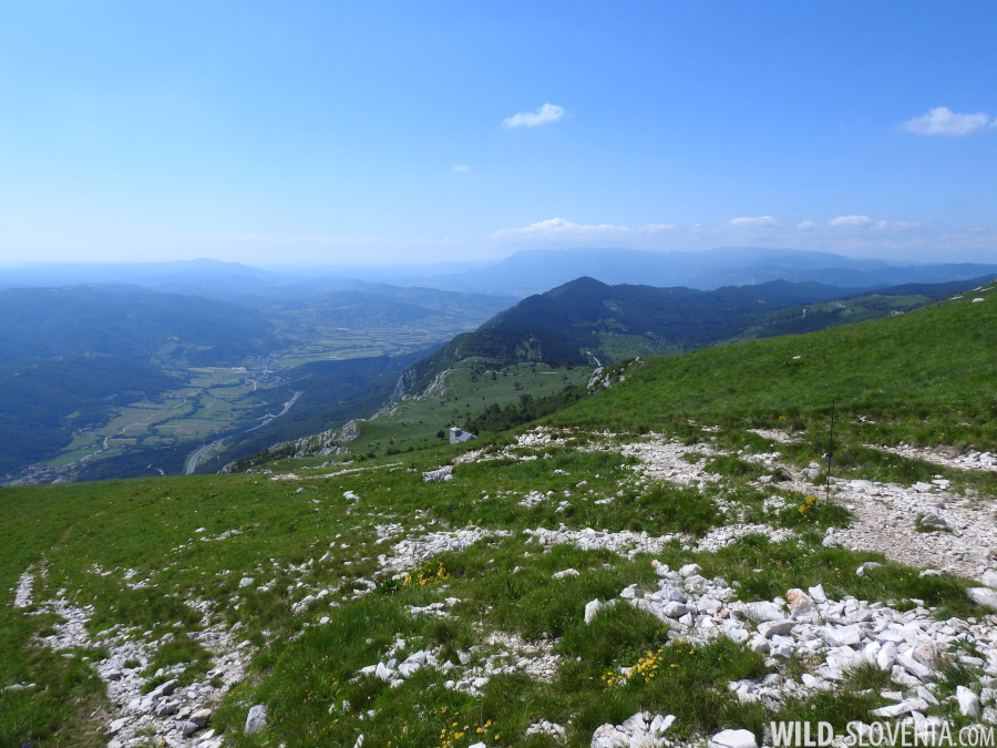 Mount Nanos with its 1242 metres above sea level is the most distinctive mountain of the Primorska region. Nanos is actually a karstic plateau, extending between Razdrto and Vipava and acting as a biogeographical border between the sub-Mediterranean Primorska and the continental Notranjska regions. Although the highest part of the plateau is the forested summit called Suhi vrh (1313 m), the most well-known and popular hiking destination is the grassy Pleša (1242 m). We like to visit Nanos throughout the year, but the traditional late-spring hike to Pleša is actually the most rewarding in terms of wildlife and scenery. Last weekend we ascended the mountain from Razdrto by taking the most scenic path through the different vegetational belts: from lowland hay meadows, oak & thermophilous woodland, rocky slopes with screes and mountain pastures on the top.