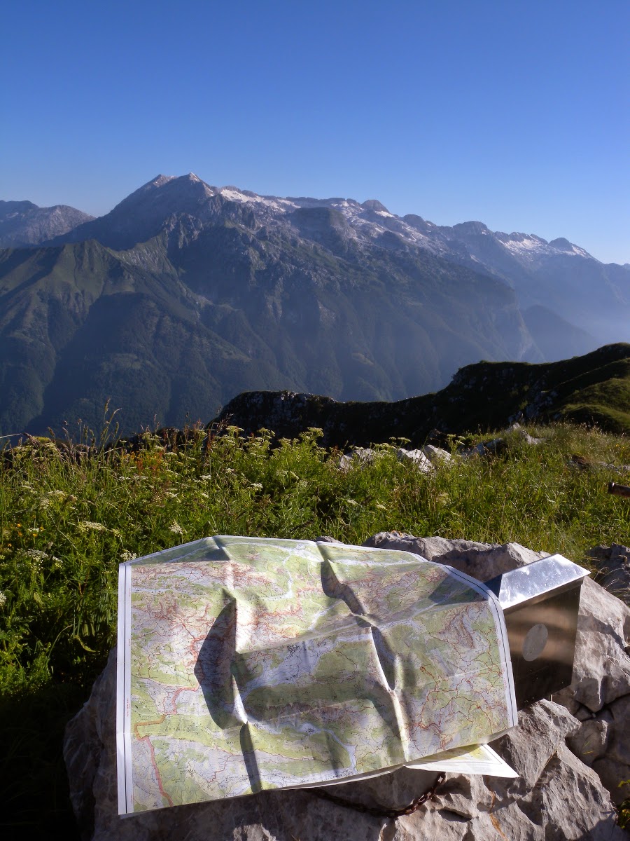 Dawn on Breginjski Stol with Mt. Krn (2244 m) in the distance. |
