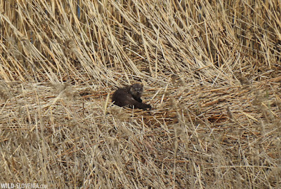 | Otter Lutra lutra, Cerkniško jezero, May. It's the 3rd time we see Otters at Cerkniško jezero in the middle of the day from one of the birding hides. This time they put on a great show for more than half an hour! |